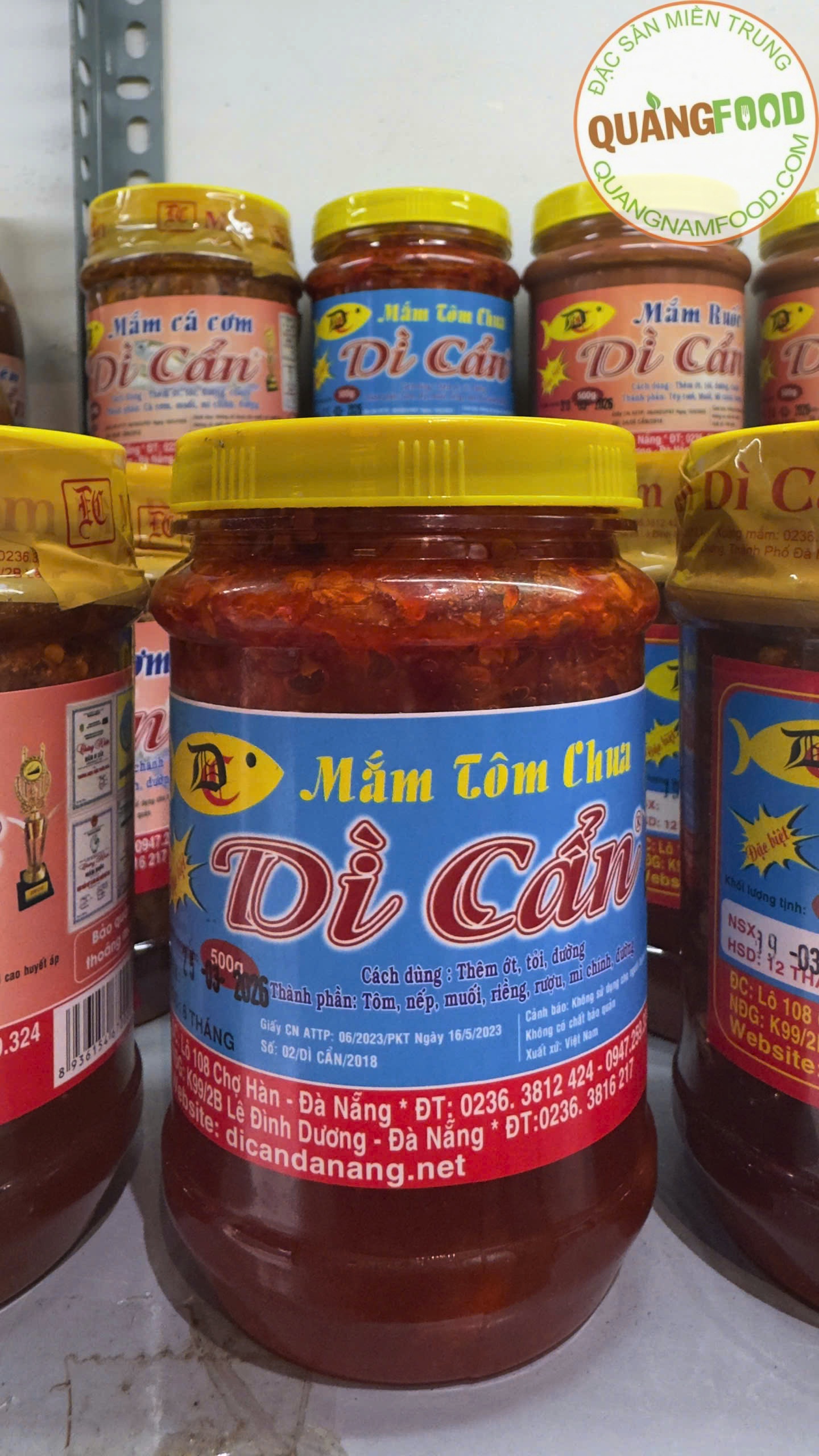 Mắm tôm chua dì Cẩn là một trong những đặc sản nổi tiếng của vùng đất Quảng Nam – nơi có truyền thống làm mắm lâu đời. Công thức được gìn giữ qua nhiều thế hệ trong gia đình dì Cẩn, không sử dụng chất bảo quản hay hương liệu công nghiệp.